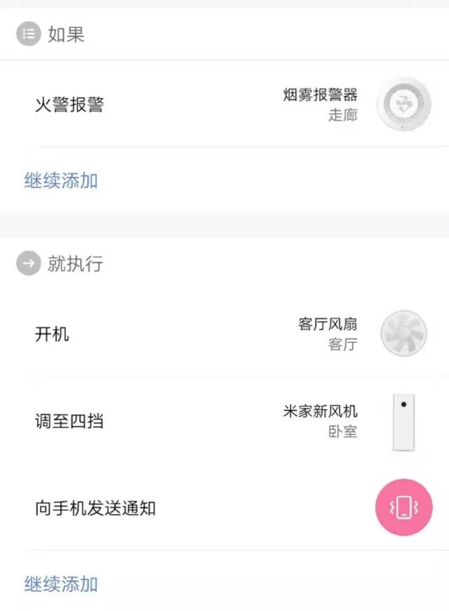 当烟雾传感器报警后,全屋风扇开启,新风开启到最大功率,洗手间换气开启最大。