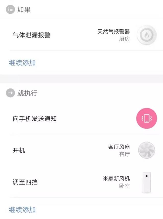 为了安全我在家里加了多种类型的传感器,其中烟雾传感器、燃气传感器和水浸传感器是常开预警状态随时提醒手机,而aqara动静贴、门窗传感器和摄像头则是开启离家模式后开启的。