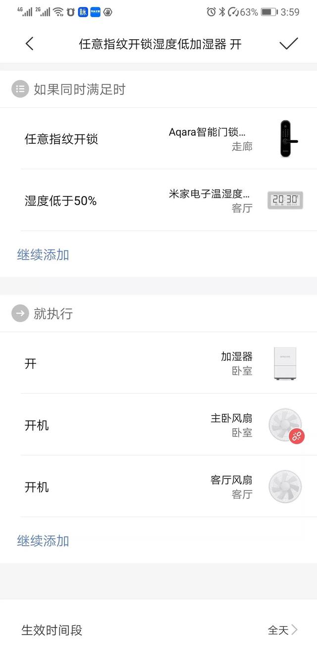 1、利用aqara指纹锁的指纹判断功能,来解决不同家庭成员对回家灯光、语音及温度的不同需求。