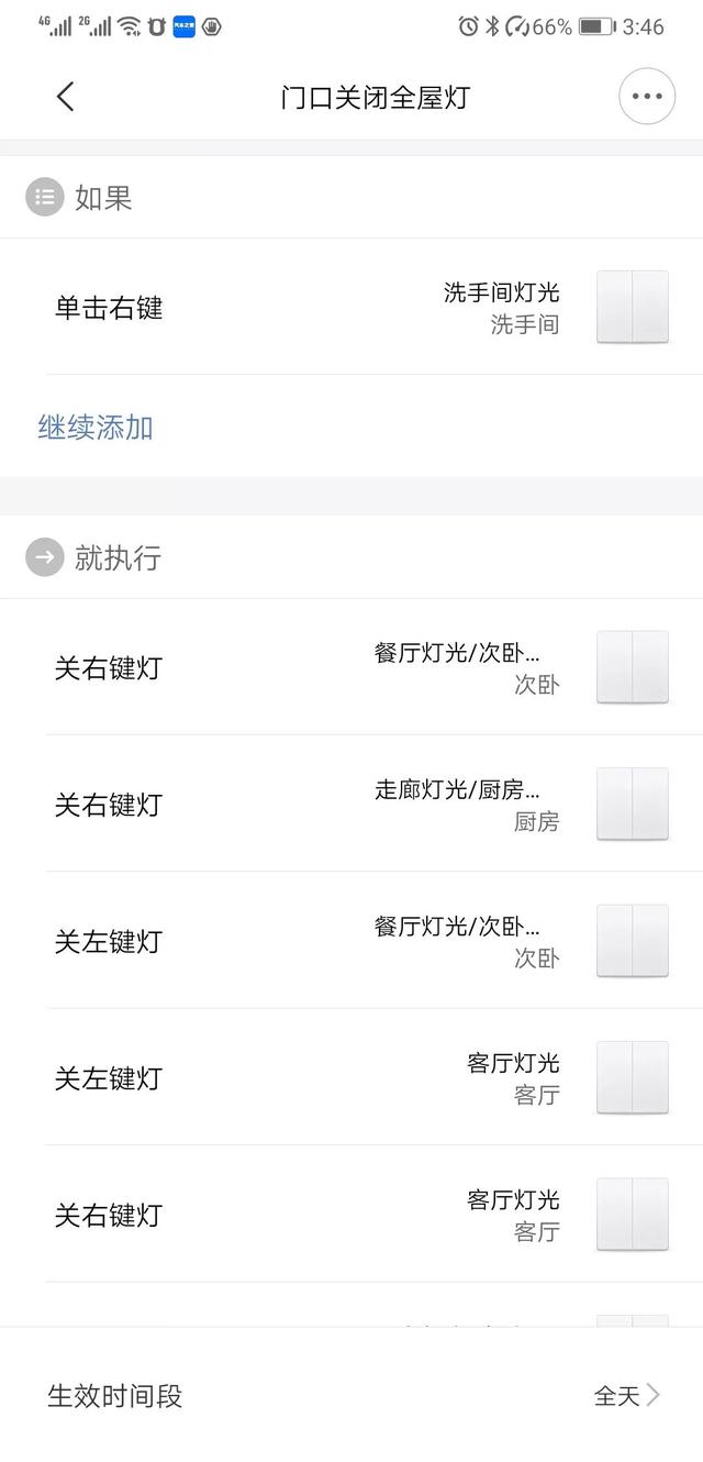 2、设置自动开启和关闭灯光时,一定要根据作息时间设置否则很可能出现坐在客厅看电影结果灯自动关闭了。