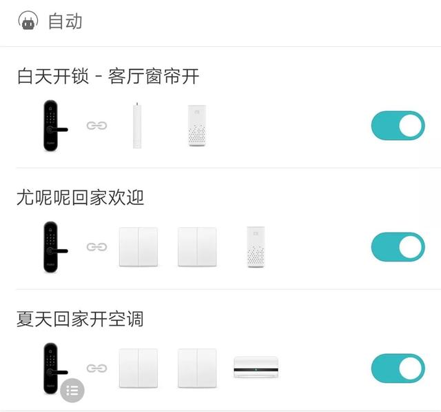绿米指纹锁判定不同指纹,发出指令让小爱播放不同的语音欢迎词,同时打开不同的屋内灯光,并根据时间来判定打开或关闭窗帘。
