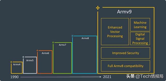 当年,从ARM V7架构升级到V8架构,最核心的变化就是从32位升级到了64位。但为了满足应用过渡期间稳定良好运行,V8架构其实向下兼容32位应用,直到今年的V9架构才大砍。