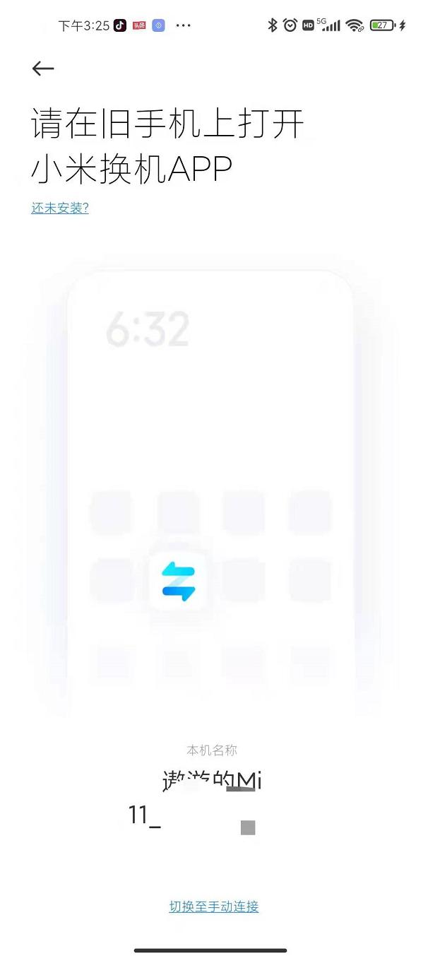 3、以旧手机以小米为例,点击打开之后,新机创建了一个热点;将旧机安装小米换机APP,然后在进入界面后找到本地释放的热点名称,选择链接!