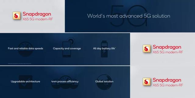 骁龙 8 上所集成的第 4 代骁龙 X65 5G 调制解调器及射频系统除了支持 SA+SA 5G 双卡双通,它还是全球首个支持高达 10Gbps 下载速度的 5G 方案。
