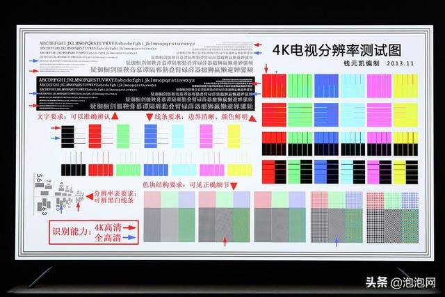从上面的电视分辨率测试截图可以看到,小米电视6 OLED的显示效果非常精细,可以清晰的分辨出细小的文字、横线等。尤其是黑底白字区域,如果是一台液晶电视,并且控光能力不是很强的话,很容易出现白色的文字外有一圈光晕,字体越小就越明显。而小米电视6 OLED凭借面板自发光的优势,即便是最小的文字也能清晰辨认。