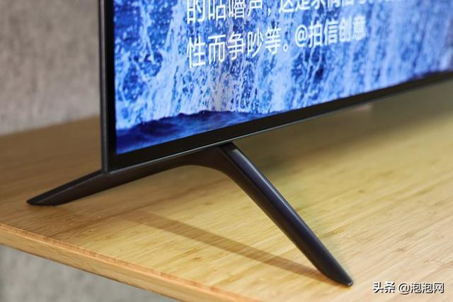 电视的底座为金属材质,十分的稳定可靠。并且底座经过特殊涂层的处理,表面的金属光泽为比较沉稳的亚光色泽,与小米电视6 OLED搭配起来显得质感十足。