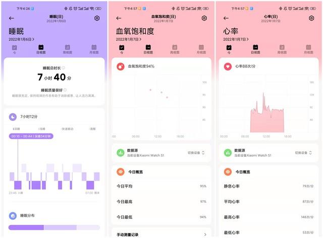 健康监测方面,小米Watch S1支持全天候的心率和血氧测试,可以实时进行测试查看数据,发现问题会提前预警。同时,小米Watch S1还支持久坐提醒、压力监测和睡眠监测等健康监测功能,其中睡眠监测不仅可以监测整夜睡眠,还可以监测午睡、小憩等零星睡眠,用户可以查看自己每天的睡眠记录,除了深眠、浅眠等记录外,还会记录心率、血氧等情况,帮助我们更详细了解每一天的睡眠情况。