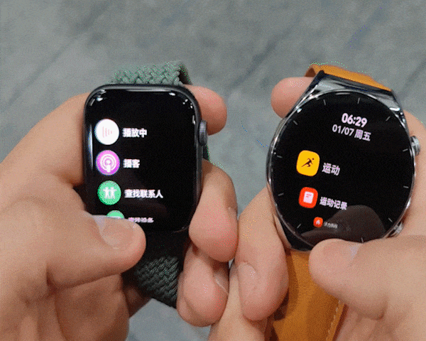 屏幕方面,小米Watch S1搭载了1.43英寸、460×460分辨率、326PPI的视网膜屏幕,支持60Hz刷新率,显示效果比较细腻,不过桌面图标在滑动过程中感受不是很流畅,这里我们对比了下苹果WATCH,同为60Hz屏幕,流畅度还是有差别的,显然苹果更流畅一些。
