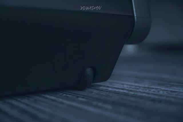 顶部操控台使用了横向 LED 设计,用来显示跑步数值,中间部分的旋钮就是跑步机的控制键,旋转点按就可以控制跑步机的速度和开关,另外这里还隐藏着几个很有意思的设计,一会儿我们再细说。外观设计的喜好因人而异,但是这个极简的风格我还挺喜欢的。