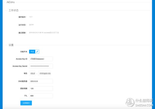 6.3 打开aliddns,复制步骤5阿里DDNS的Access Key ID和Access Key
