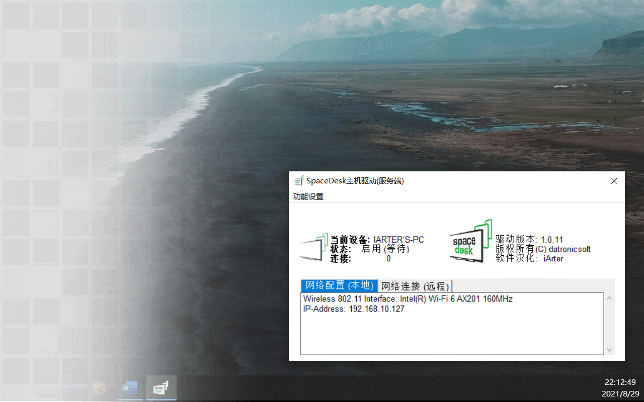 此外,可能还有人想要进一步利用小米平板5这块屏幕,想让它当成笔记本的副屏,前面的远程桌面方式仅仅只能镜像,而且还是服务器转发,在内网使用也没速度优势。这里介绍一款软件,SpaceDesk,使用方法很简单,.net结尾的那个官网下载Windows端和安卓端分别安装在电脑和小米平板5上面。官网没有中文版,网上也没看见有人汉化。但界面按文字不多,所以我在写这篇文章前顺手把它汉化了,还没微调显示细节,先凑活用着,感兴趣的留言发你们。要让电脑可以正常检索到外部无线显示器,需要在PC端“启用”先。