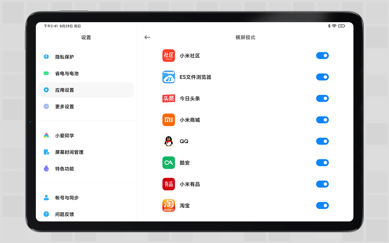如果你不希望一些应用默认的平行窗口模式显示,其实可以在设置里调整MIUI的对APP的接管方案。在设置/应用设置/横评模式,里面可以取消一些适配平行窗口的APP。