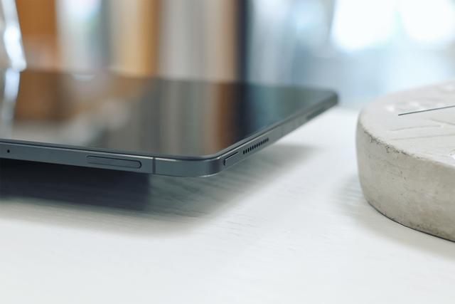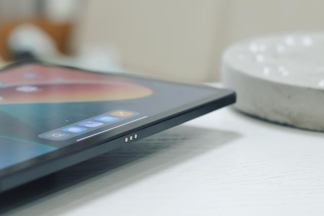 平板另一侧底部有3个金属触点,用于接驳官方的键盘保护壳。我这边还没有购买保护壳其中一个原因就是我依然在考虑是单买保护壳,还是入手带键盘的保护壳。毕竟一个99,一个399。所以后面我打算先接个蓝牙键盘试试生产力场景是否顺手,再决定购买哪个保护壳。