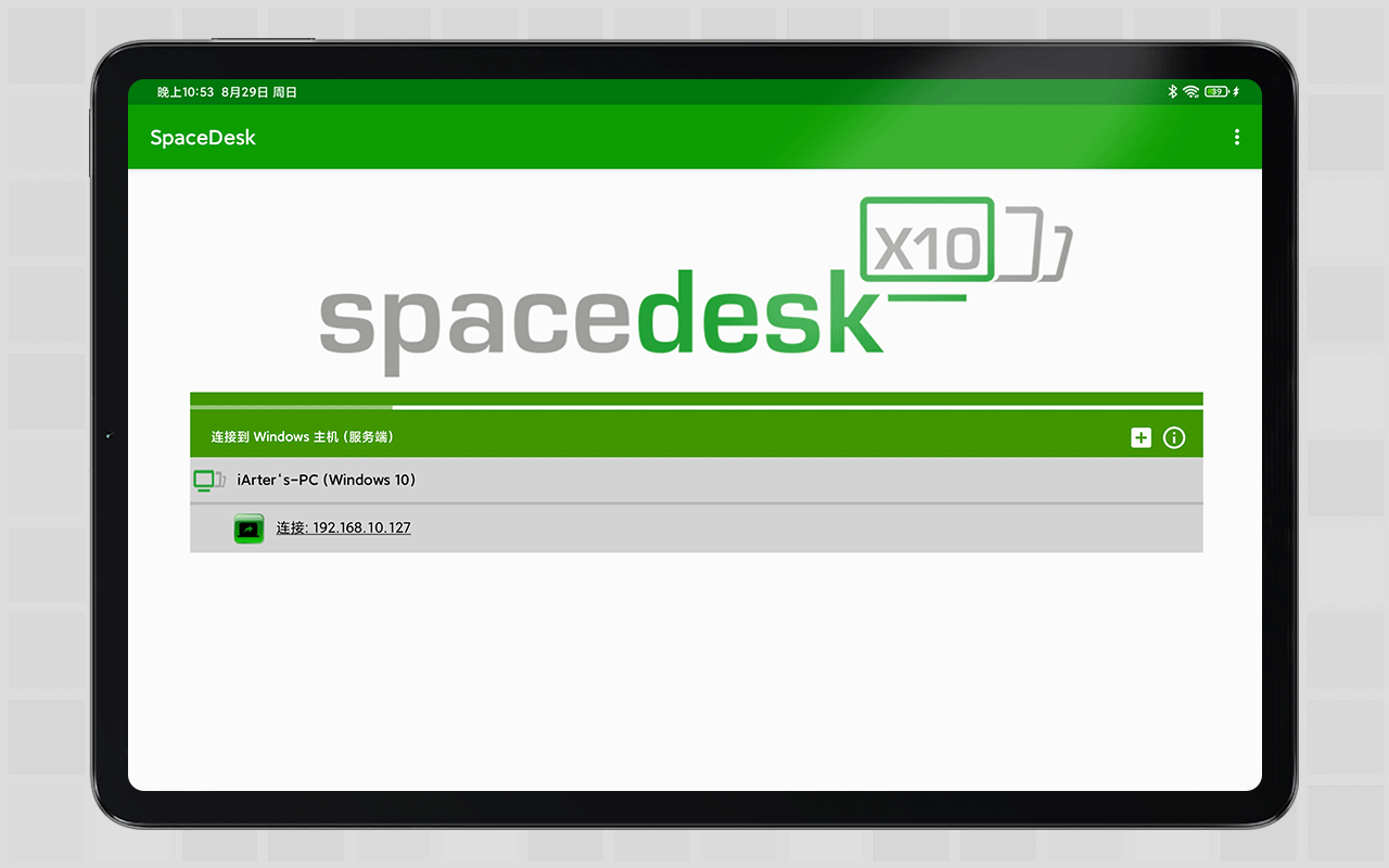 确认电脑和平板都在同一个局域网下,打开SpaceDesk安卓端就能发现局域网里的开启SpaceDesk驱动的PC设备,点击那个内网IP连接即可。不过建议在连接前点击软件设置/分辨率,把里面的分辨率调整到自己合适的,之前忘了设置,电脑同步过去的副屏分辨率很低,当然,你也可以在电脑的显示设置了单独调整主显示和副显示的分辨率。顺便也提一句,官网原版也是英文的,我这个是汉化版。