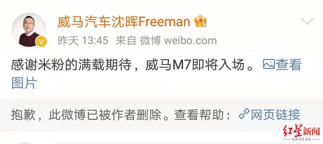 9月8日,威马汽车创始人沈晖在微博留言,称“感谢米粉的满载期待,威马M7即将入场”。威马汽车感谢米粉的期待,这是怎么回事?