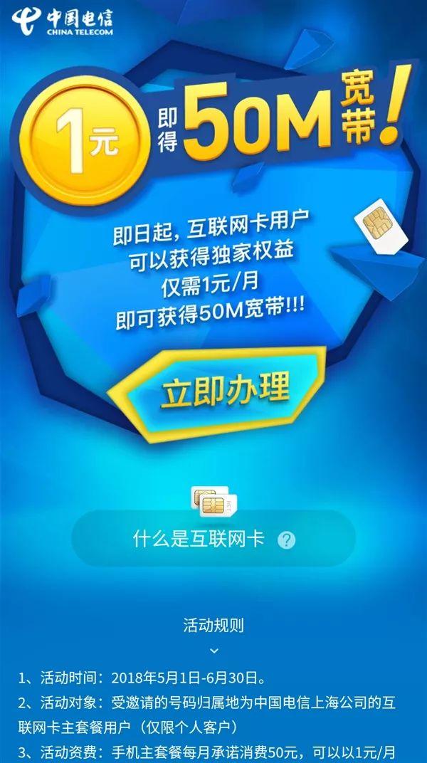 具体来说,满足以上条件的用户,即可1元办理50M电信宽带,包括安装300元/线、手续费10元/线也将免除。