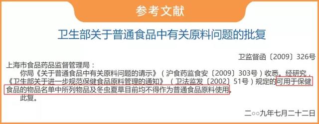 根据《卫生部关于普通食品中有关原料问题的批复》,可用于保健食品名单中所列物品不得作为普通食品原料。