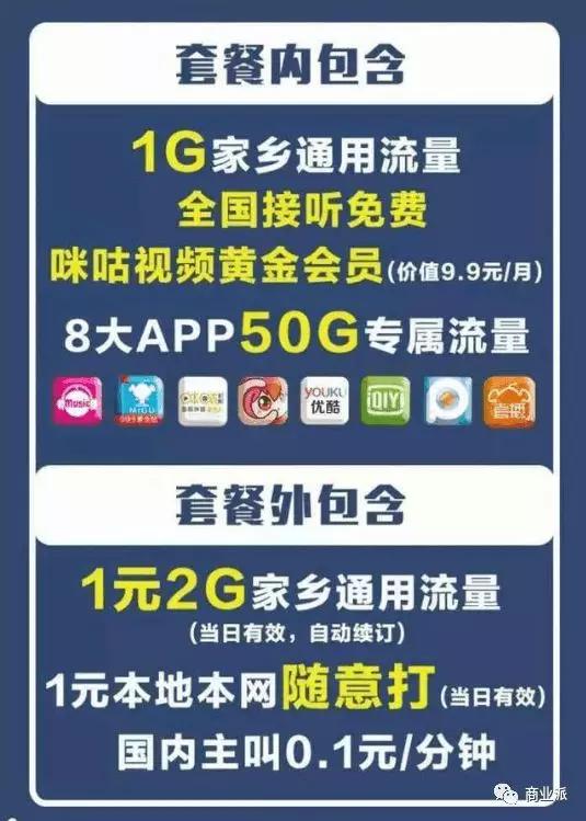 中国移动推出“霸王卡”可以看到是做出了重要决定下推出的,此次推出的套餐是不是觉得移动终于良心了。其实还是有“套路”,不限量套餐中的定向流量是指定了八大APP使用,爱奇艺、优酷、PPTV、咪咕视频、咪咕直播、咪咕音乐、咪咕阅读、咪咕圈圈。