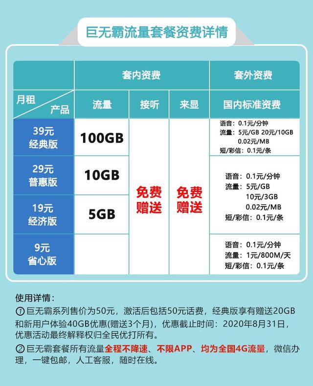 像全民优打就是这里面比较有代表性的企业之一,之前移动取消了8元套餐,就引起业界很多质疑,毕竟很多人想买10元以下的套餐作为保号套餐,或者给家里老人孩子使用。移动取消后很多人就关注了全民优打的巨无霸系列,月租同样只有9元,打电话0.1元/分钟,接听全免费,全国范围内也没有漫游和长途费用,综合来看性价比不错。当然对于流量有需求,可以选择19元5G,29元10G的产品,都是不限速的通用流量。其中39元100G的更是被看作这个时代性价比最高的套餐之一。