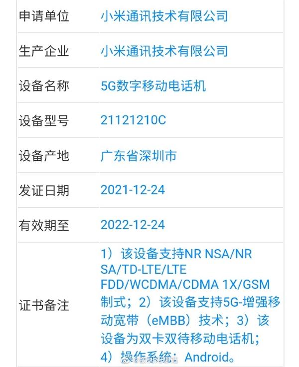 该机将会预装基于Android 12的MIUI 13系统,将带来全新的特性和功能,并且流畅度也会进一步提升,非常值得期待。