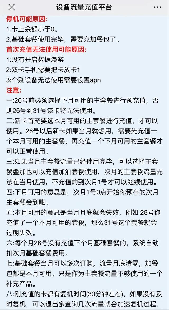 其次,在这之前我买了一张电信的物联卡,今天重点来讲下这个物联卡。先给大家看看它的说明界面