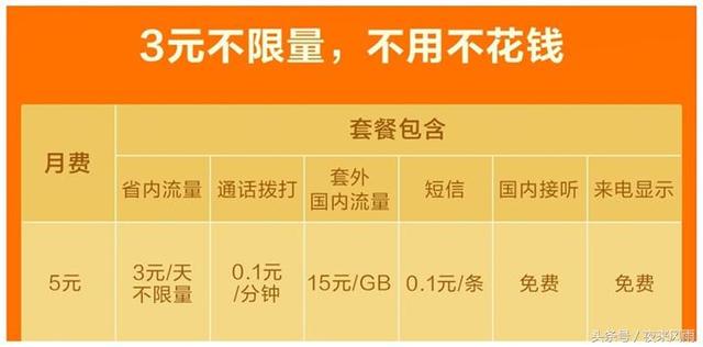 3元日租卡:属于不限流量的手机卡套餐,按照月度结算,每月累计使用流量达到40GB时,最高速率调整到3.1Mbps,超过100GB流量后,速率调整为128Kbps;费用方面,按照每天3元计算,加上月租5元,每月费用合计为95元,是的,仅仅是95元,就能够享受到三大运营商198/199的上网体验