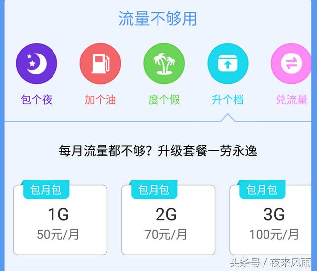 对于这款月租卡的资费标准,笔者刚刚查看了江苏移动的相关费用:50元1G,70元2G,100元3G(各地运营商资费标准可能存在差异,下图供读者参考)