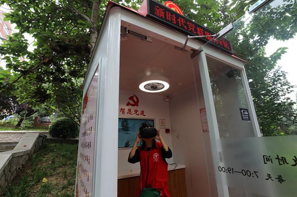 齐鲁网青岛7月8日讯 近日,山东省首家数字化党群服务e站在青岛市北区合肥路街道社区启用,青岛联通运用"5G+VR"技术助力打造该服务e站。在这个每天7点—19点开放的驿站里,党员群众可通过扫码登录,体验和使用 VR智慧党建、学习强国、灯塔党建、初心讲堂、网格党建、党务公开、便民服务、社情民意等8个板块,感受5G时代下街道党群工作信息处理平台的便捷。