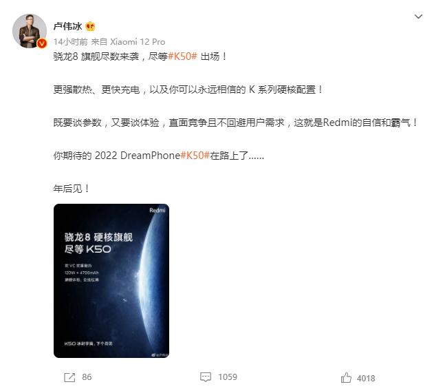 随着新年的到来,各大手机厂商竞争更加激烈,纷纷开始发布新品。近日,有消息称搭载高通骁龙8旗舰处理器的RedmiK50系列即将于下月发布。卢伟冰在微博上也开始发布消息进行预热。一起来看看吧!小米集团中国区总裁,Redmi品牌总经理卢伟冰表示自己将亲自担任K50宣发的组长,如此来势汹汹,看来小米这次新品...