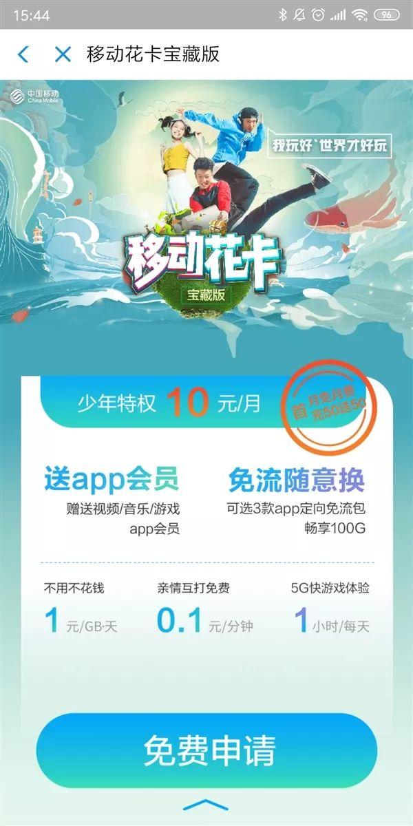 6月27日消息,据媒体报道,中国移动推出首张5G电话卡:移动花卡宝藏版。据悉,移动花卡宝藏版套餐分为两档,25岁(含)以下每月10元,25岁以上每月19元。全国接听免费、赠送来电显示。资费方面,每天1元/GB通用流量,0.1元/分钟全国语音,0.1元/条短信。值得注意...
