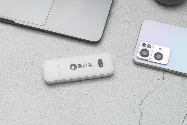 蒲公英X4U随身WiFi的外观设计还是挺不错的,通体白色,正面是蒲公英LOGO和网络状态指示灯。
