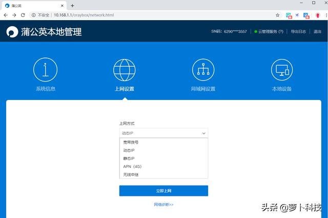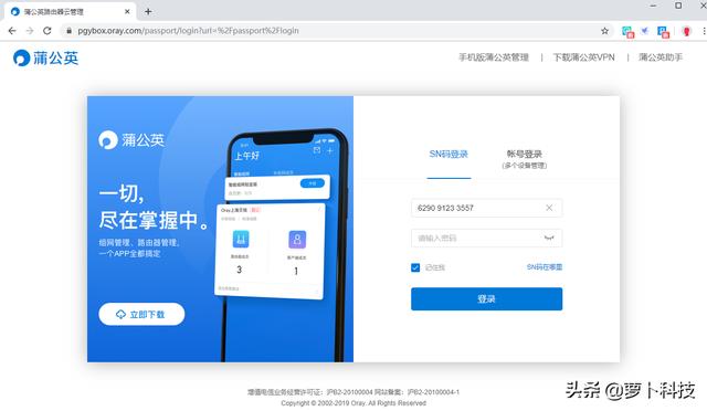 接着用网线连接X4和电脑,记住是用Lan口,在网页输入pgybox.oray.com,跳转后用X4后面的SN码登录,初始密码是admin。