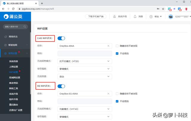 除了电脑联网,X4还自带2.4G和5G两种wifi网络,联网后也可以让智能设备连接使用。在【wifi设置】里,2.4G是OrayBox-49AA,5G是OrayBox-5G-49AA,初始设置是没有密码的,记得用的时候加个密码,别被蹭网了。