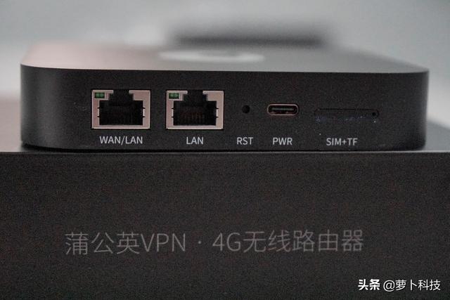 再来看看接线口,从左到右是WAN/LAN口,RST重启键,PWR应该是电源接口,还有就是SIM+TF卡槽,4G上网必备。