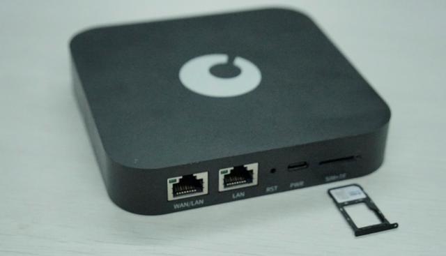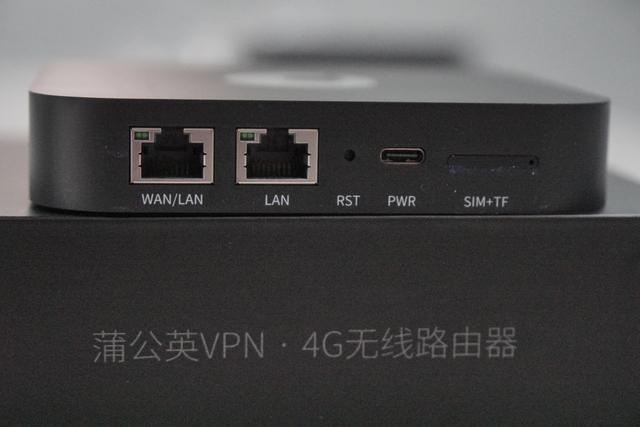 侧面则是蒲公英X4的接口,有一个WAN口和一个LAN口,再来是重置口,出问题拿一根牙签捅进去就好了。再旁边是电源口,插电源线的。再旁边则是4G上网卡的卡槽,不仅可以插SIM卡,还可以插SD卡,当NAS来用。
