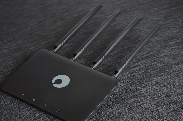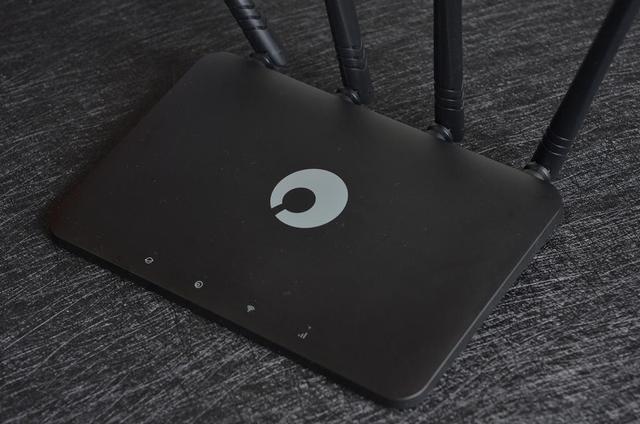 从外观上看,蒲公英X4C这款路由器并没有过多花俏的设计,跟一般的路由器类似。工程塑料外壳,通体黑色。在面板的中间醒目的蒲公英LOGO。