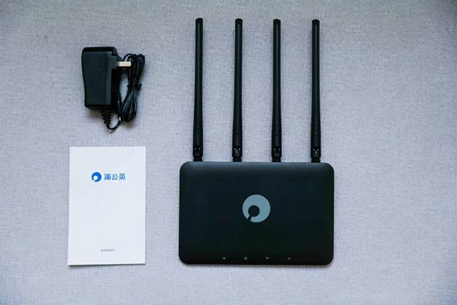 配件展示:蒲公英X4C路由器一台、电源适配器、快速指南一份。