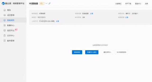 第一步登录蒲公英管理页面进入网络管理平台,选择左侧的智能网络,新建网络,然后取一个网络名称,接着再添加 成员。