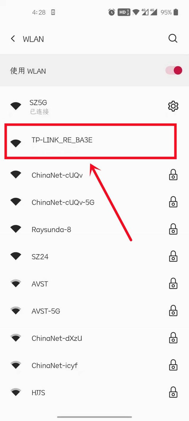 第2步:手机会自动搜索出扩展器发出的无线Wi-Fi:TP-LINK_RE_XXX. 从手机进入无线局域网,点击该Wi-Fi.