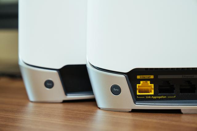 在路由器背面接口处的左侧,设计有Sync同步按钮,通过它可以实现自动配对组Mesh网络。