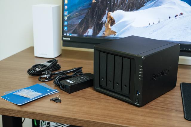 这款NAS是四盘位,支持四块2.5英寸SSD/HDD或3.5英寸硬盘,支持RAID 0/1/5/6/10以及Synology Hybrid RAID、Basic和JBOD。使用四盘位,因此机身体积略大,机身尺寸为223*199*166mm,重2.18kg,配备两颗92mm风扇。