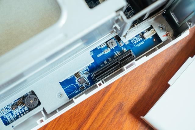 预留拓展使用的PCI-E 2.0×4规格插槽,因为威联通TS-251D的主板是作为NAS定制的,所以相比一些DIY NAS主板上的PCI-E 2.0接口要更好,因为威联通TS-251D的PCI-E 2.0是×4规格,DIY主板的那些基本是×1规格。有这个插槽就有很不错的升级可玩性了,例如拓展万兆网卡或者M.2 SSD等。