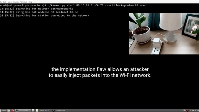 这意味着攻击者不需要做任何特别的事情。此外,许多Windows上的WiFi加密在被分割成几个(明文)片段时,也会错误地接受明文帧。