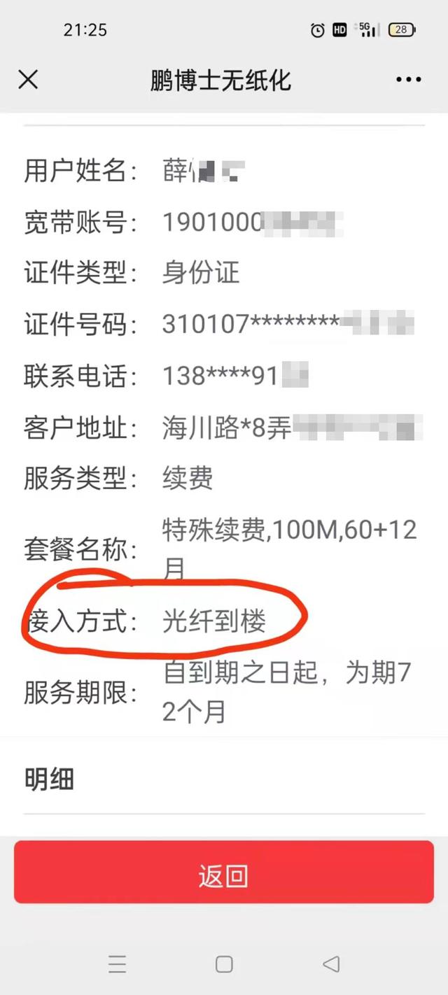 邓女士家的宽带“接入方式”为“光纤到楼”。受访者供图