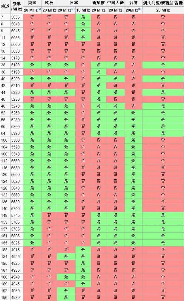而对于WiFi6所使用的2.4Ghz与5Ghz(5.8Ghz)频段,在每个国家开放的信道与频率仍然有些许差别。