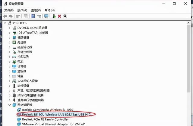 在设备管理器的界面中的“网卡适配器”下面找到需要连接WIFI的无线网卡设备。