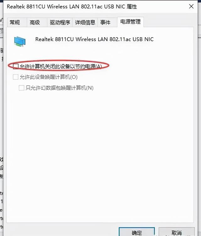 出现无线网卡的属性设置界面,为了避免出现掉线的频率,特别是笔记本电脑的空闲状态下的掉线。我们可以将在“电源管理”选项卡下面的“允许计算机关闭此设备以节约电源”的勾选项去除。