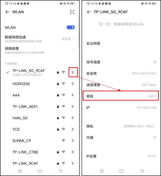 方法1:通过无线名称中5G标识区分