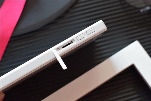 产品的右侧设计有电源键、菜单键、SIM卡槽、指示灯,打开SIM卡槽就可以将SIM卡放入到里面,需要注意的是支持的是NANO SIM卡。