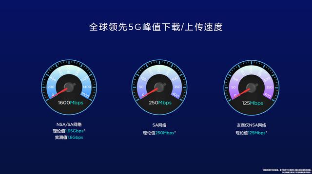 而且在理论的上下行速度上也是领先各大厂商的,在NSA/SA网络下,理论峰值下载速度高达1.65Gbps,通过笔记本电脑使用USB 3.0 Type-C连接可以实测值高达1.6Gbps。SA网络下理论峰值上传速度高达250Mbps,友商仅NSA网络的理论峰值上传速度为125Mbps,当然这里说的只是上传而已。